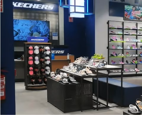 Skechers es una firma de calzado que se encuentra en el Centro Comercial Príncipe Pío. Está especializada en calzado deportivo de fitness, con un estilo moderno, casual y también apto para ocasiones más formales como puede ser ir al trabajo.