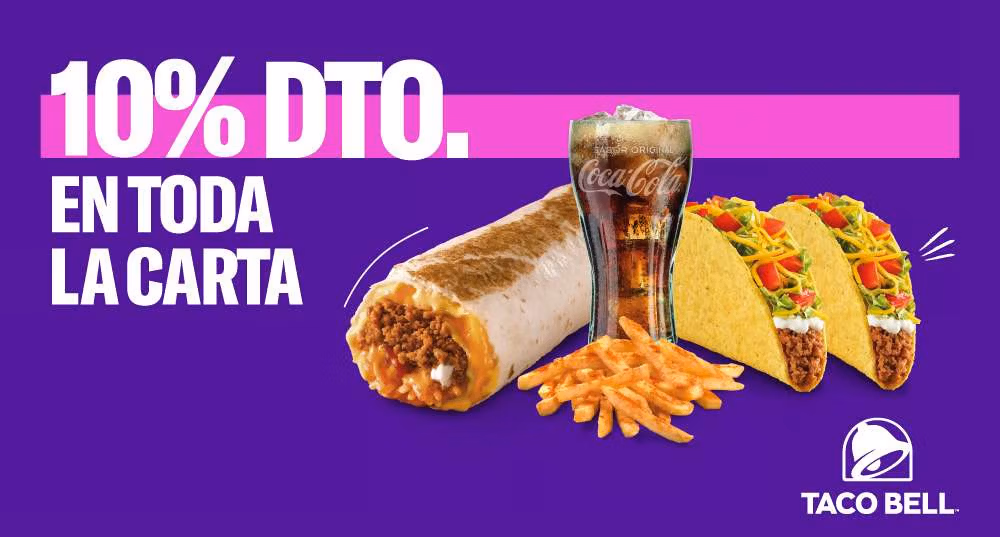 En Taco Bell podrás disfrutar de deliciosos entrantes para compartir, menús, productos individuales y postres. Tacos, burritos, quesadillas y crunchywrapshacen que nuestra oferta sea amplia y variada. Ah! Y no te olvides rellenar gratis las veces que quieras tu refresco.